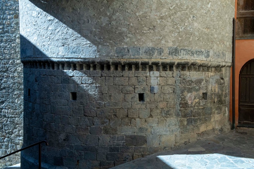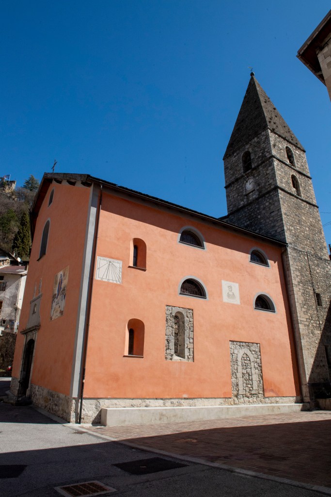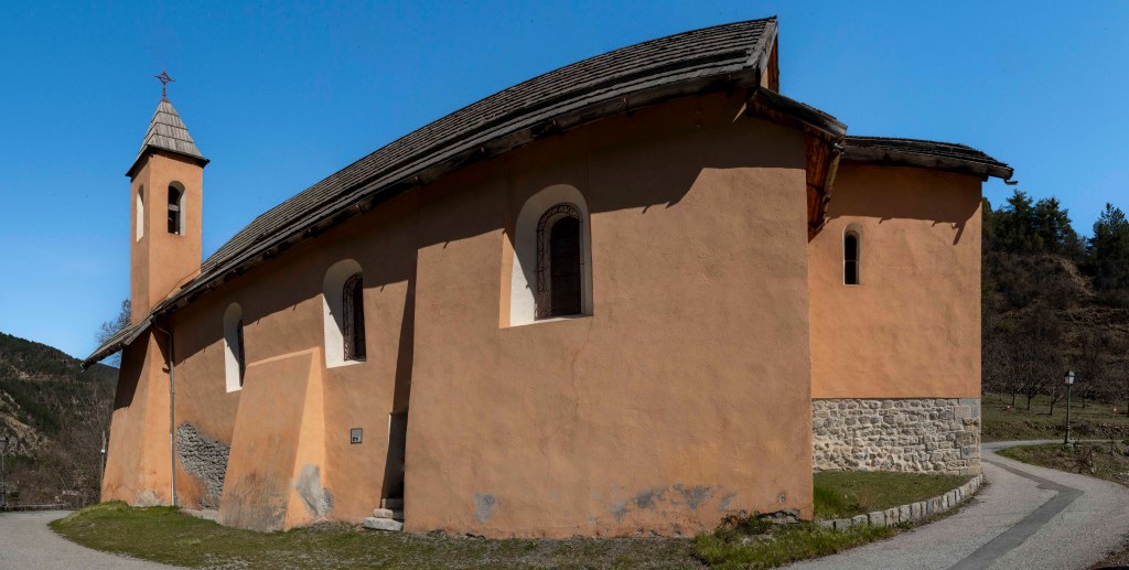Ses origines sont médiévales. Le chevet et clocher sont d’inspiration lombarde. Le chevet est présenté comme la partie la plus ancienne, avec une pierre laissée apparente. Sur la façade Ouest, la restauration a laissé visible des encadrements en pierre de taille dont deux sont conservés sans enduit depuis le XIIIᵉ siècle.