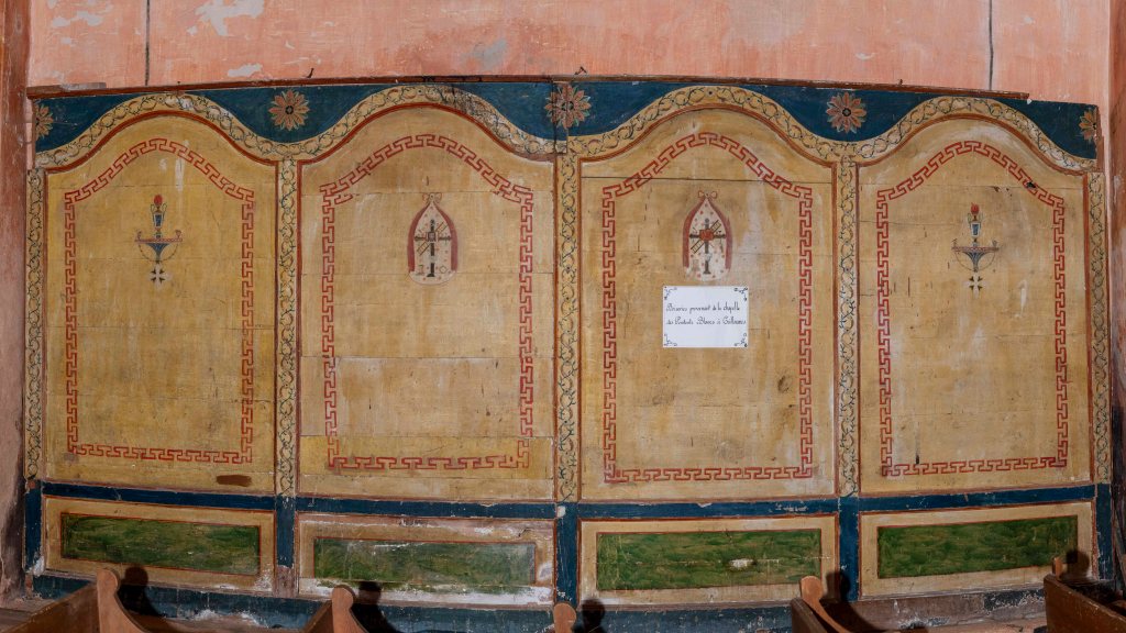 – Panneaux en bois peint ou dossiers de stalles / provenant des Pénitents Blancs