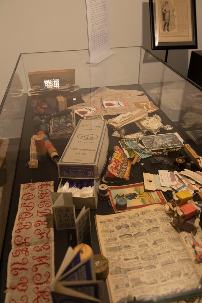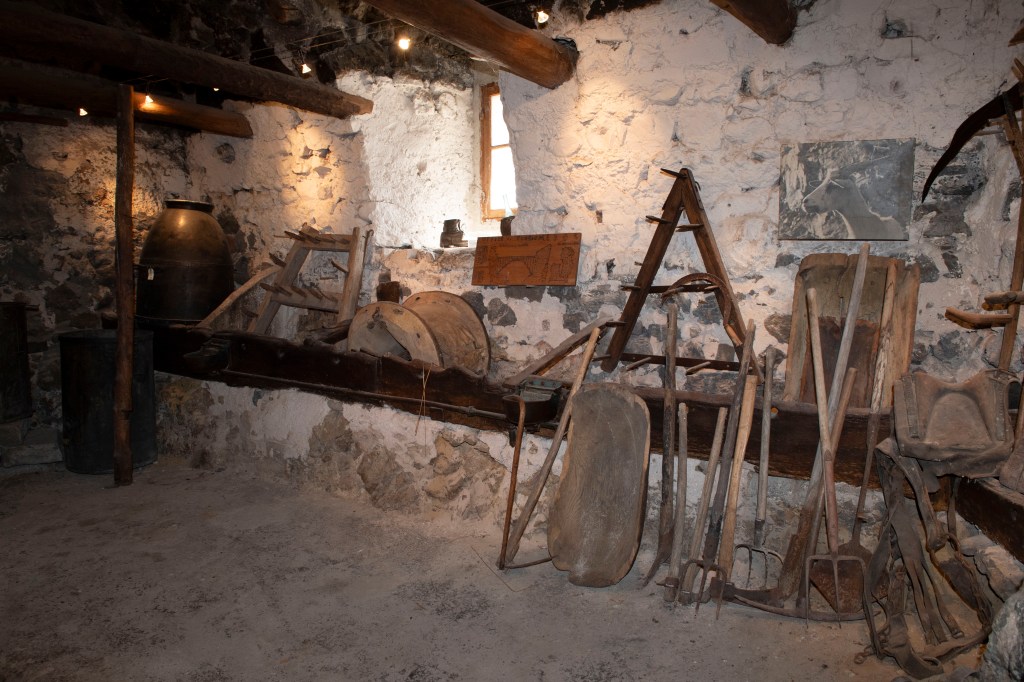 Un vaste espace est dédié aux outils, aux productions et aux savoir-faire, avec des ensembles liés à des pratiques traditionnelles comme la vannerie, le tissage, le repassage, la broderie, les rouets et un outillage polyvalent.