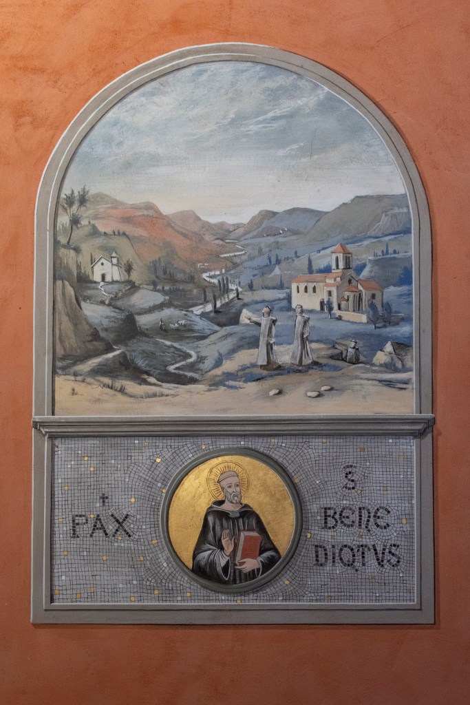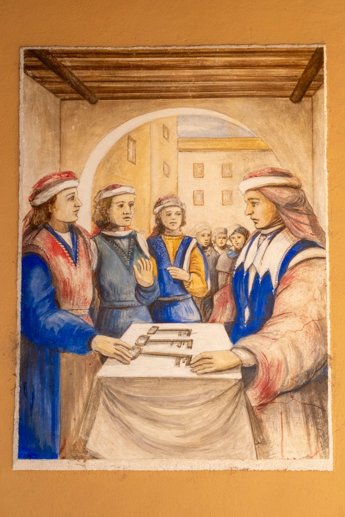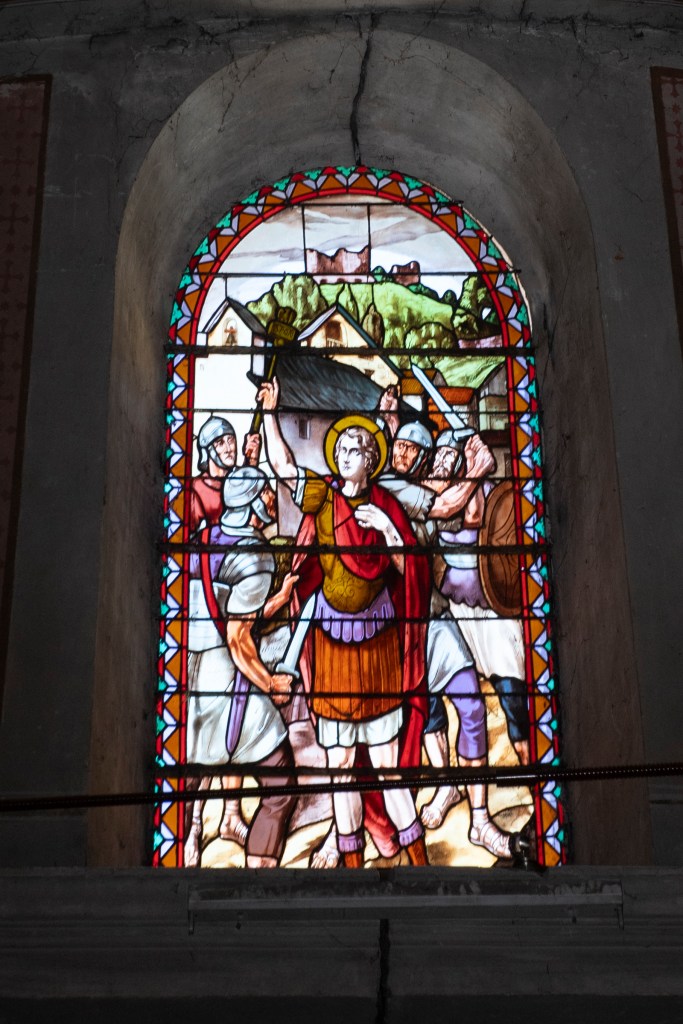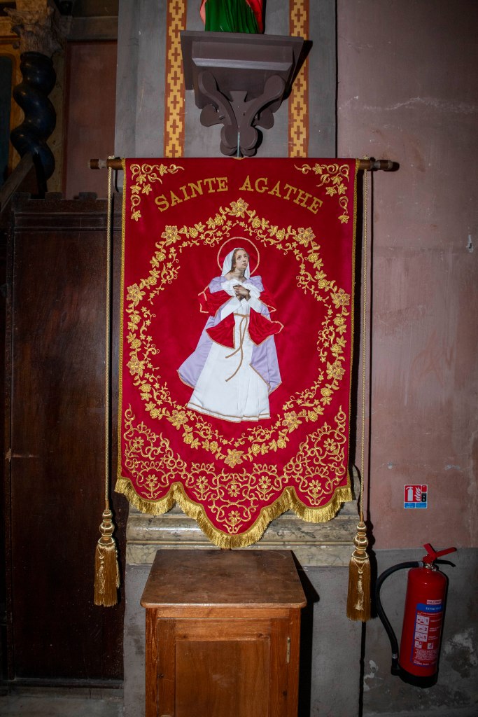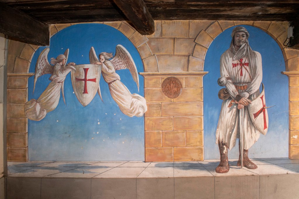 A l’intérieur des fresques retracent l’histoire religieuse locale, depuis Guillaume le Libérateur, présenté comme fondateur au Xe siècle, jusqu’au vœu des sapeurs de l’Empire au début du XIXᵉ siècle, en passant par l’incendie de 1682.