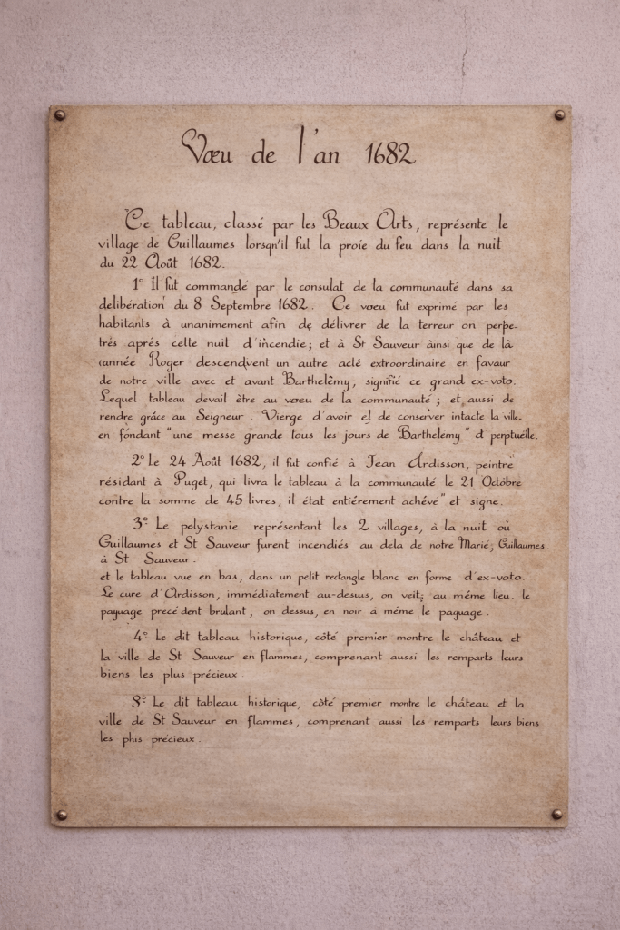 Au final, Guillaumes se comprend comme un ensemble où l’histoire, les traditions et le patrimoine s’emboîtent. Le village garde des repères forts — château, église Saint-Étienne, sanctuaire de Buyeï — mais il ne se résume pas à ses monuments. Les pratiques locales, les récits, les objets conservés et expliqués au musée, et les rendez-vous culturels donnent une lecture plus complète. On passe ainsi d’une histoire “écrite dans la pierre” à une histoire transmise, partagée et réutilisée aujourd’hui, à travers des initiatives concrètes et une vie culturelle régulière.