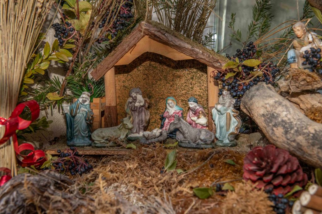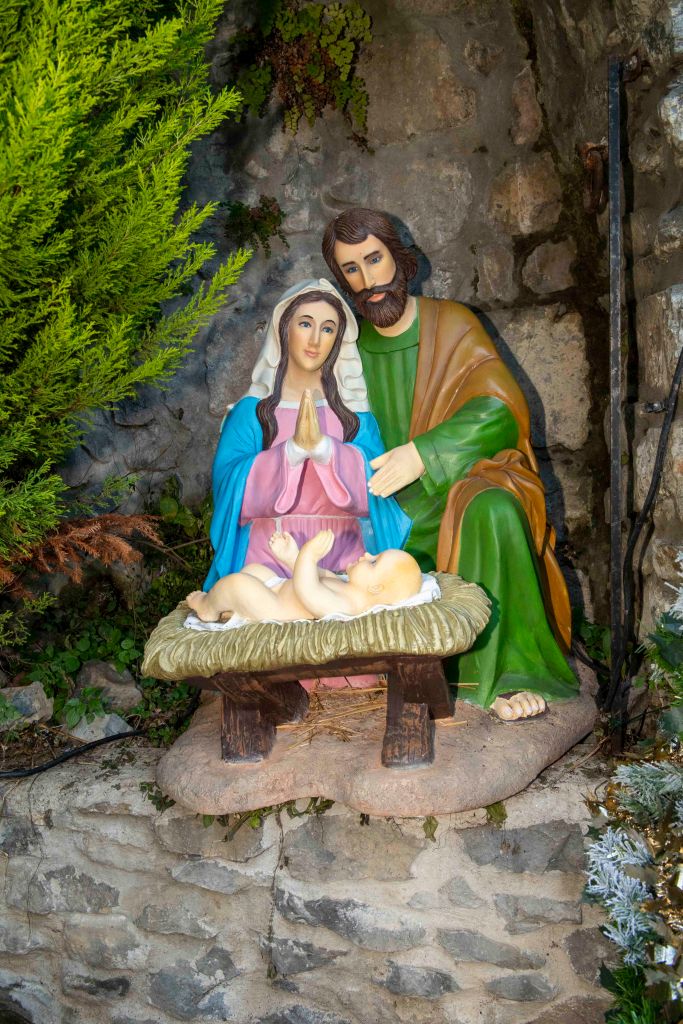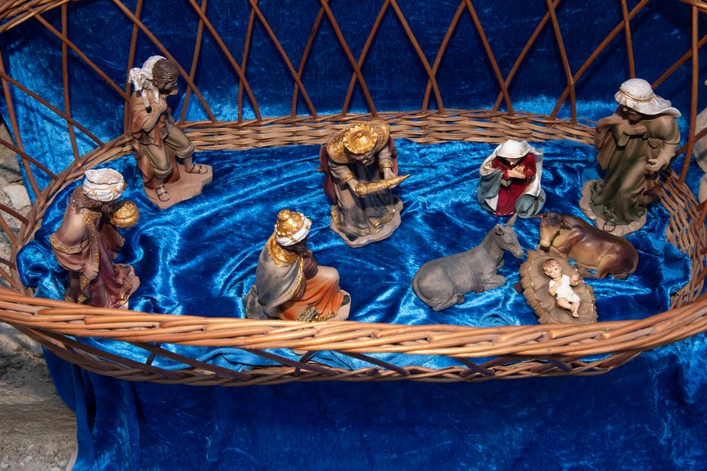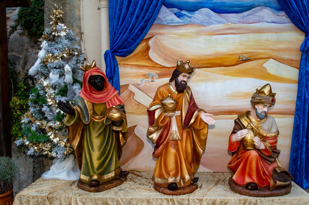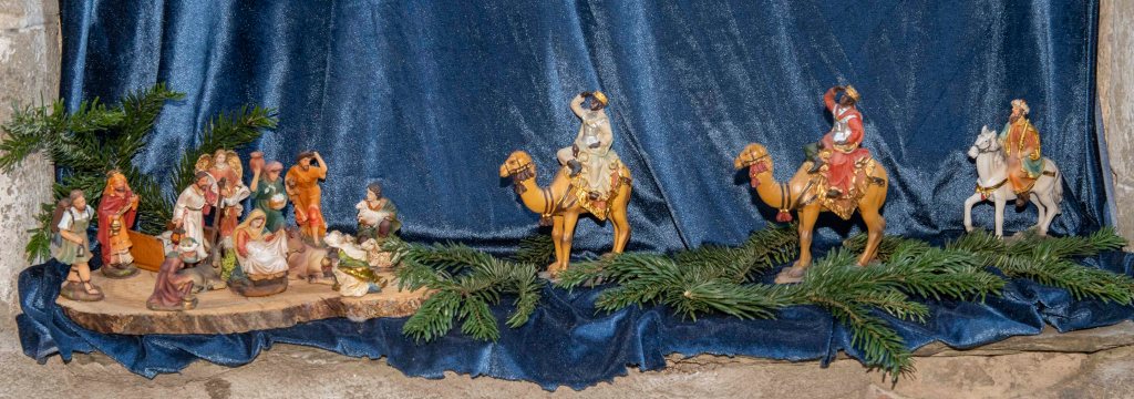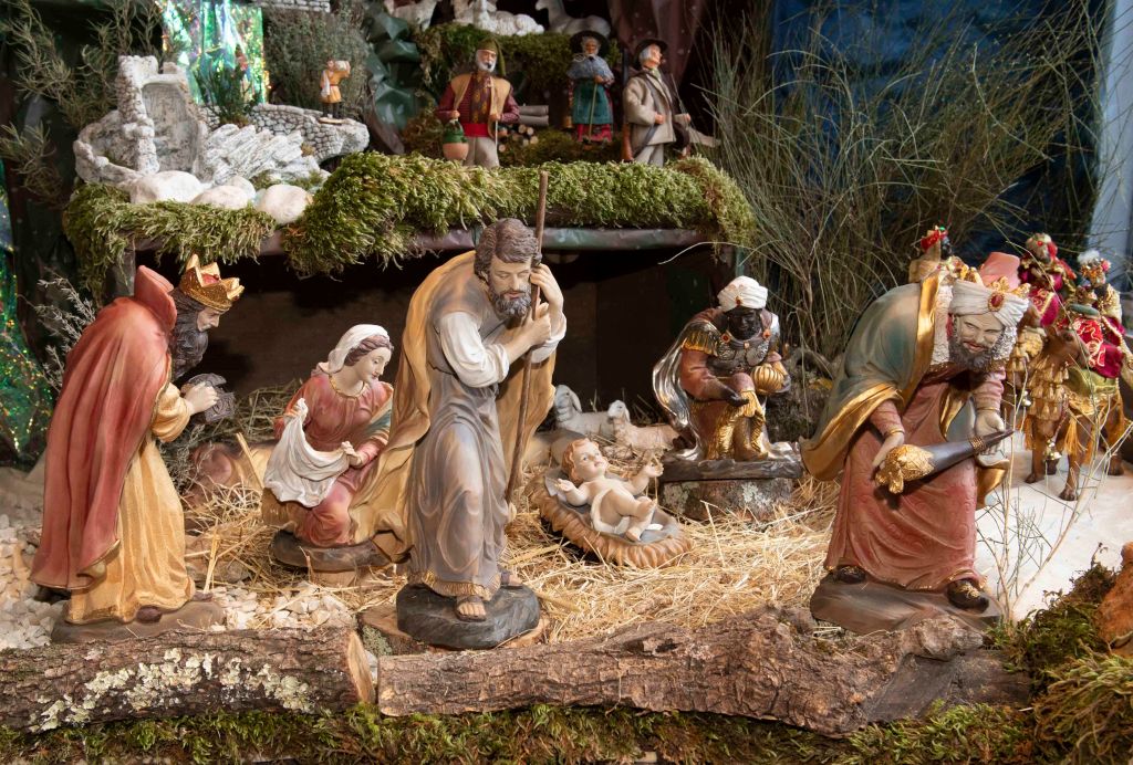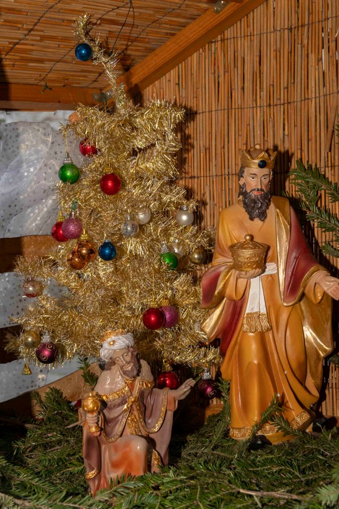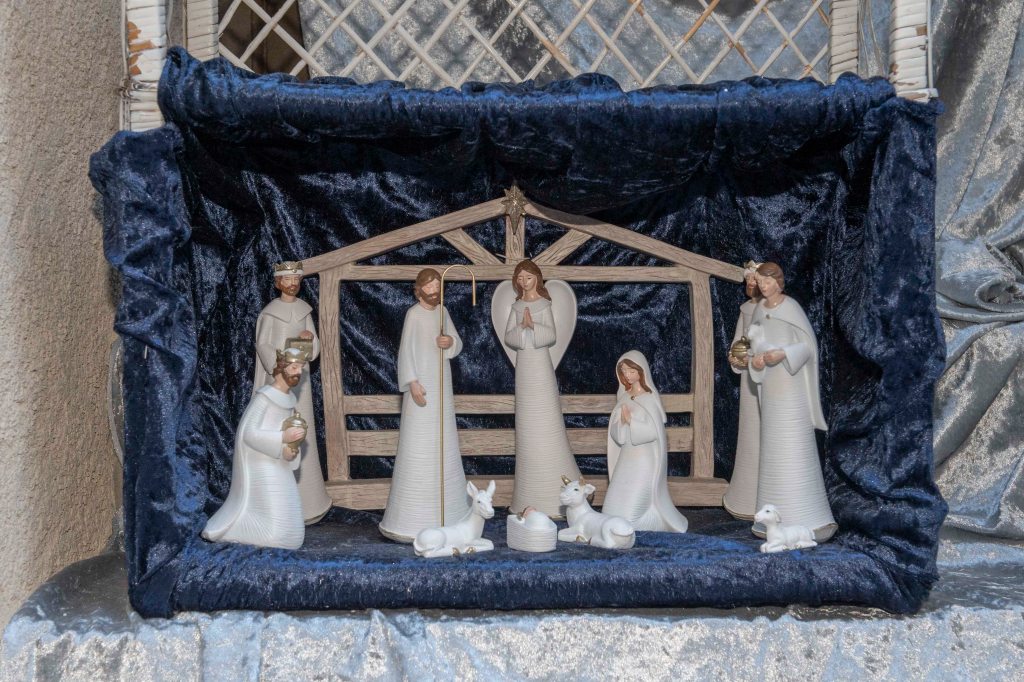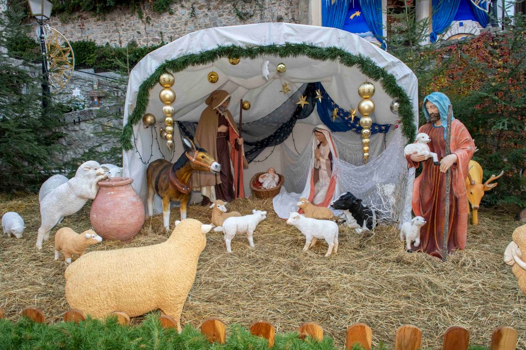 Au cœur de la crèche, l’Enfant Jésus est entouré de Marie, Joseph, du bœuf et de l’âne qui le réchauffent, des bergers et de l’ange annonciateur. À l’Épiphanie, les Rois mages rejoignent la scène avec leurs présents – or, encens et myrrhe – qui symbolisent la royauté, la divinité et la dimension humaine du Christ.